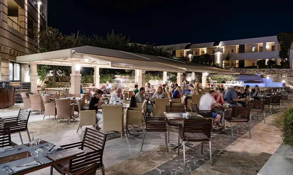 Dit ophold på Cretan Dream Resort & Spa inkluderer allerede en dejlig morgenmadsbuffet, så dagen kan starte roligt og bekvemt. Ønsker du ekstra forkælelse, kan du opgradere til halvpension og se frem til stemningsfulde middage i hotellets hovedrestaurant hver aften kl. 19.00 - 21.30.