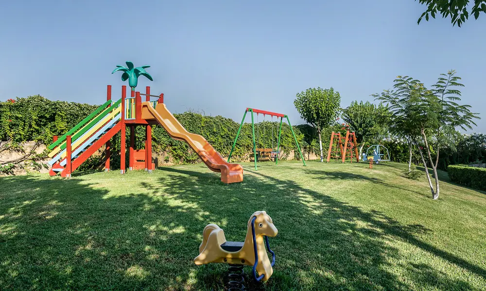 For familiens yngste gæster er der en separat børnepool, og bag hotelbygningen ligger desuden en grøn have med legeplads, hvor børnene kan lege frit.