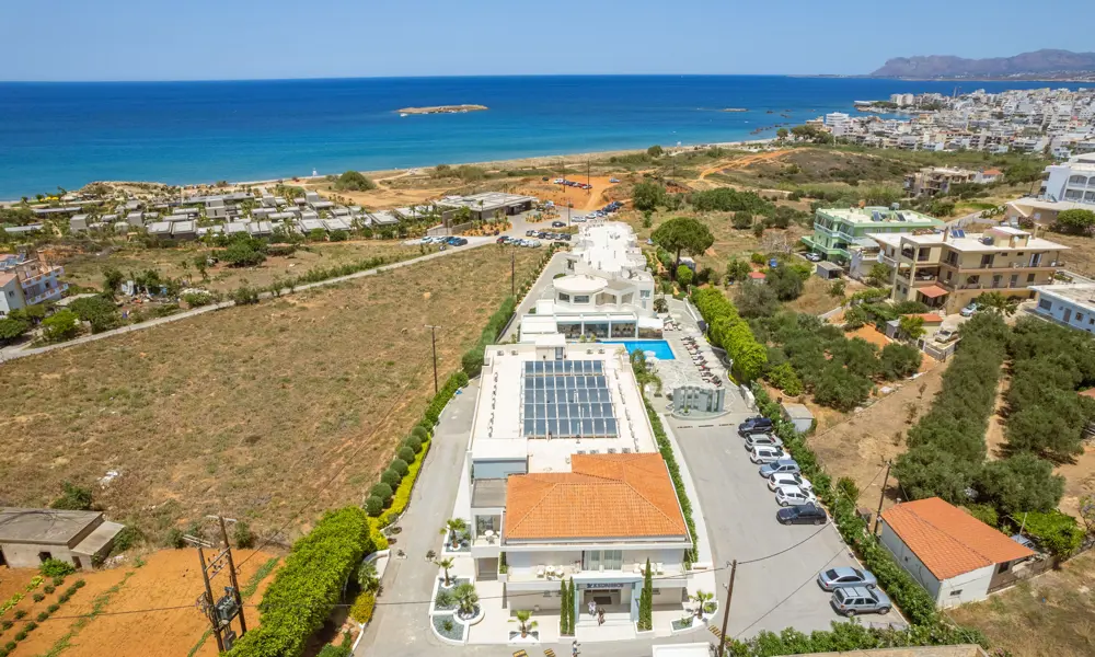 Hotel Kedrissos er perfekt placeret på Kreta mellem strandbyen Agii Apostoli og hovedbyen Chania. Fra hotellet har du kun 500 meter til vandet og 2 km til Vestkretas charmerende hovedby, Chania.
