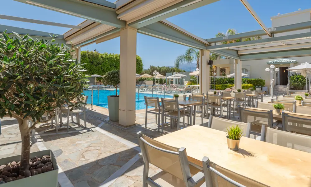 På Hotel Kedrissos venter en rolig og afslappet atmosfære, hvor gæsterne altid er i fokus. Centralt på hotellet finder du den solfyldte swimmingpool med liggestole og parasoller. Swimmingpoolens ene ende er for børn. Ved poolkanten kan du dagen igennem nyde kolde og varme drikke og spise dig glad i græske specialiteter og andre populære retter.