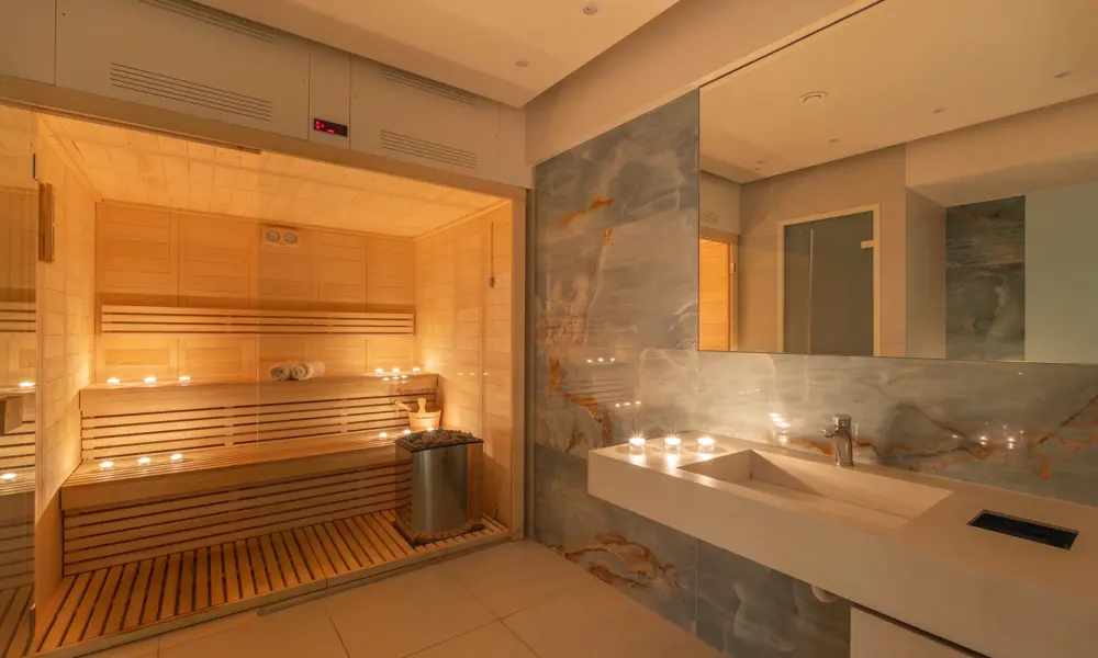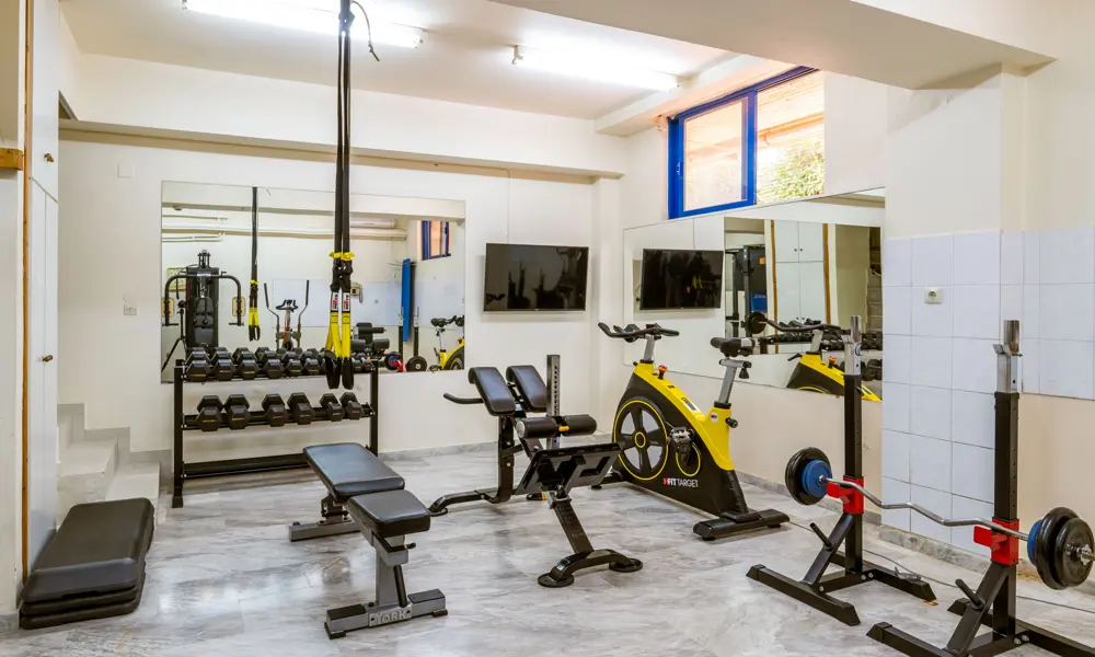 I hovedbygningen finder du blandt andet hotellets lækre sauna, som kan benyttes mod betaling samt et fitnessrum af ældre dato, som frit kan benyttes.