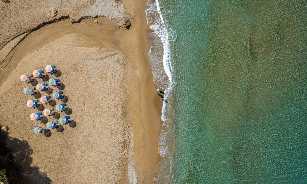 Vil du udskifte hotellets swimmingpool med en tur til stranden, så er der flere muligheder. Foran Hotel Kedrissos med front mod havet går der en vej til venstre, som tager dig til Aptera strand. Turen til stranden tager ca. 10 min. og vejen dertil er kuperet flere steder. Se ruten her. Ved Aptera strand udlejes der som udgangspunkt solsenge og parasoller i sommerhøjsæsonen, men kan ikke garanteres. Fra Aptera strand er der kort gåafstand til den store populære sandstrand, Golden Beach, som er beliggende i Agii Apostoli.