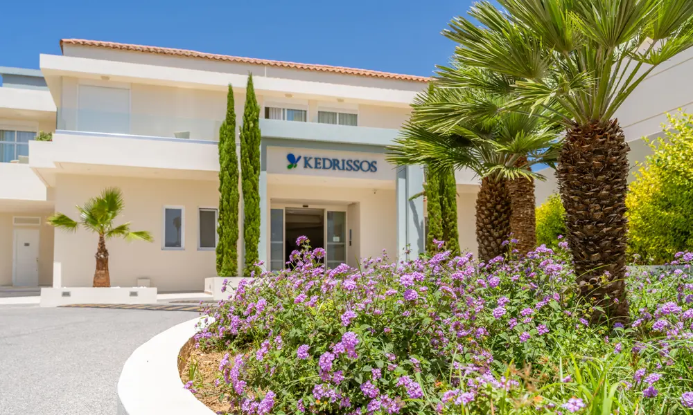 Hotel Kedrissos er familieejet, og i mere end 3 årtier har den græske familie med stor passion og kærlighed kræset om hotellets gæster. Hotellets hjerte er den solfyldte swimmingpool med poolbar, liggestole, parasoller og et lille poolafsnit for børn. Udover gode faciliteter og rummelige dobbeltværelser tilbyder hotellet også veludstyrede ferielejligheder til parret og den store familie.