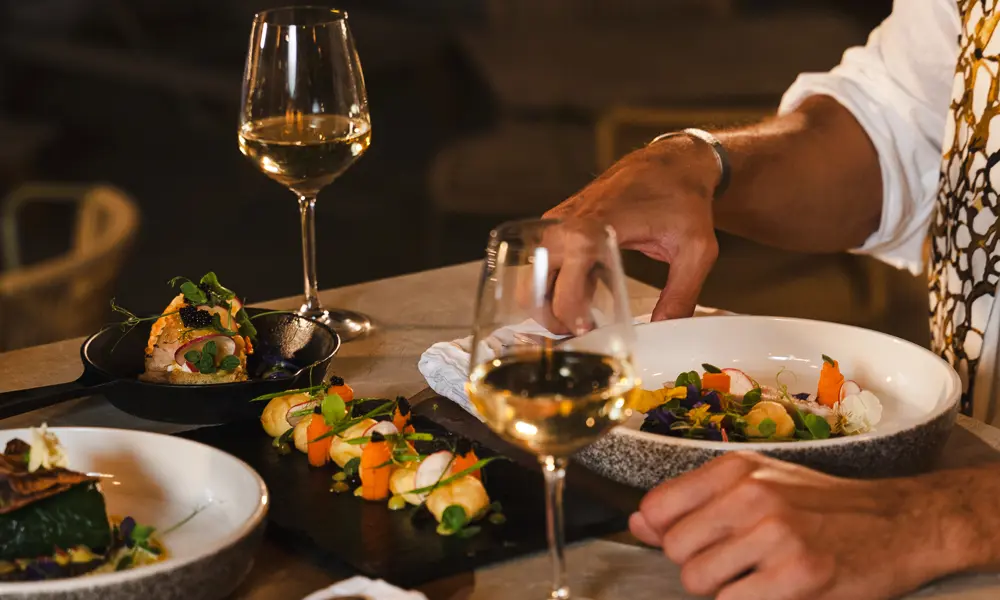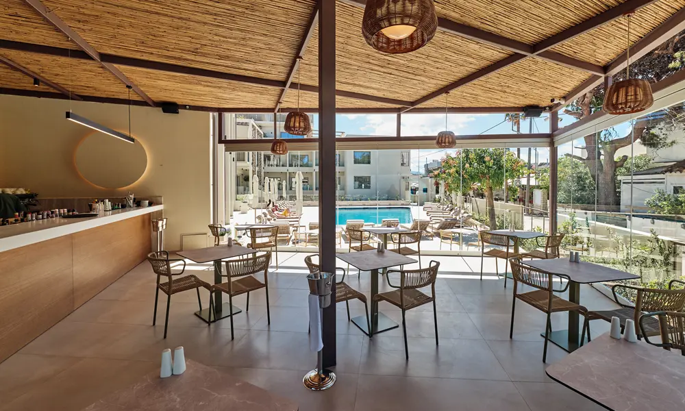 Den indbydende stemning fortsætter også i hotellets restaurant og bar, som er elegant placeret i forlængelse af poolområdet. Her kan du nyde gode madoplevelser dagen igennem lige fra morgenmad til aftensmad samt drinks og snacks.