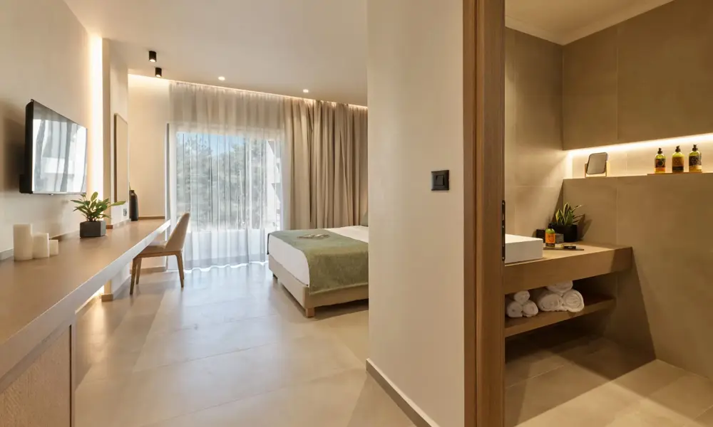Hotellets dobbeltværelser med balkon og pooludsigt er moderne og stilfuldt indrettet. Dobbeltværelserne har blandt andet badeværelse med bruseniche, aircondition og fladskærms TV.