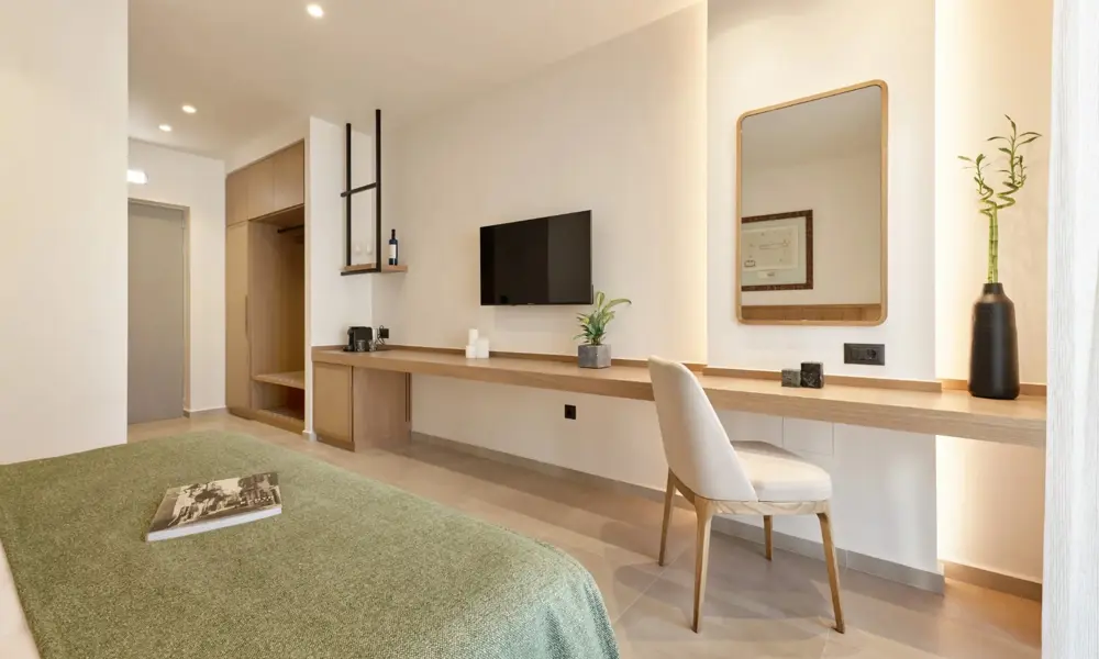 Træd ind i et af hotellets lyse og rummelige værelser, hvor moderne komfort møder omhyggeligt udvalgte indretningsdetaljer. Vælg f.eks. et lækkert dobbeltværelse med balkon og pooludsigt eller nyd opholdet i en 2-plans junior suite med balkon. Alle værelser er veludstyrede med blandt andet minikøleskab, kaffemaskine til kapsler, elkedel, fladskærms TV, hårtørrer samt gratis Wi-Fi, aircondition og safetyboks.