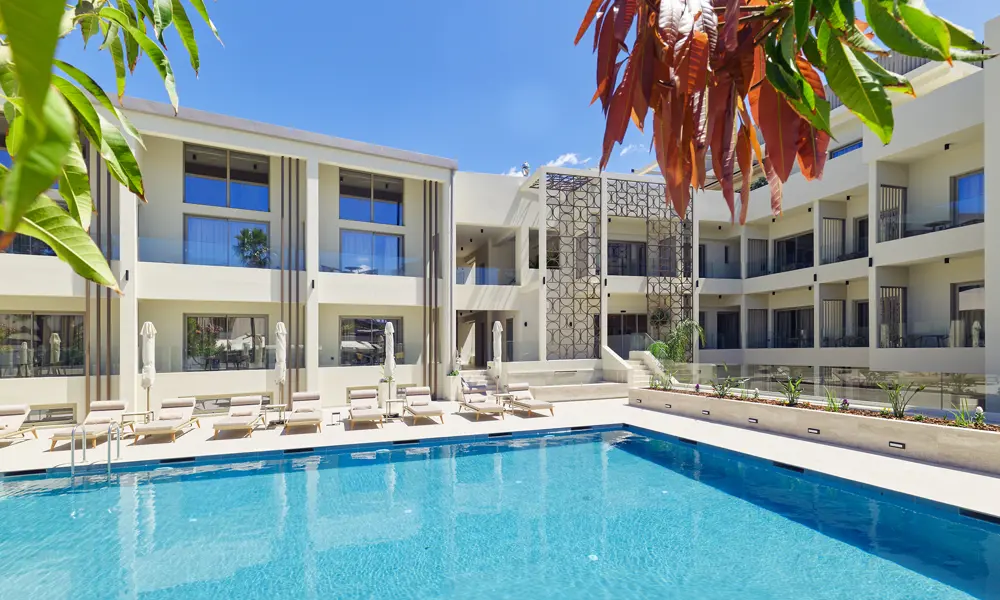 Inea Sole Boutique Hotel har et indbydende poolområde med komfortable liggestole og parasoller perfekt til afslapning og solbadning. Med kun 250 meter til den lange sandstrand Glaros kan du nemt skifte mellem pool og sand mellem tæerne, og vil du opleve flere strande, ligger både Iguana Beach og andre dejlige sandstrande i gåafstand fra hotellet.