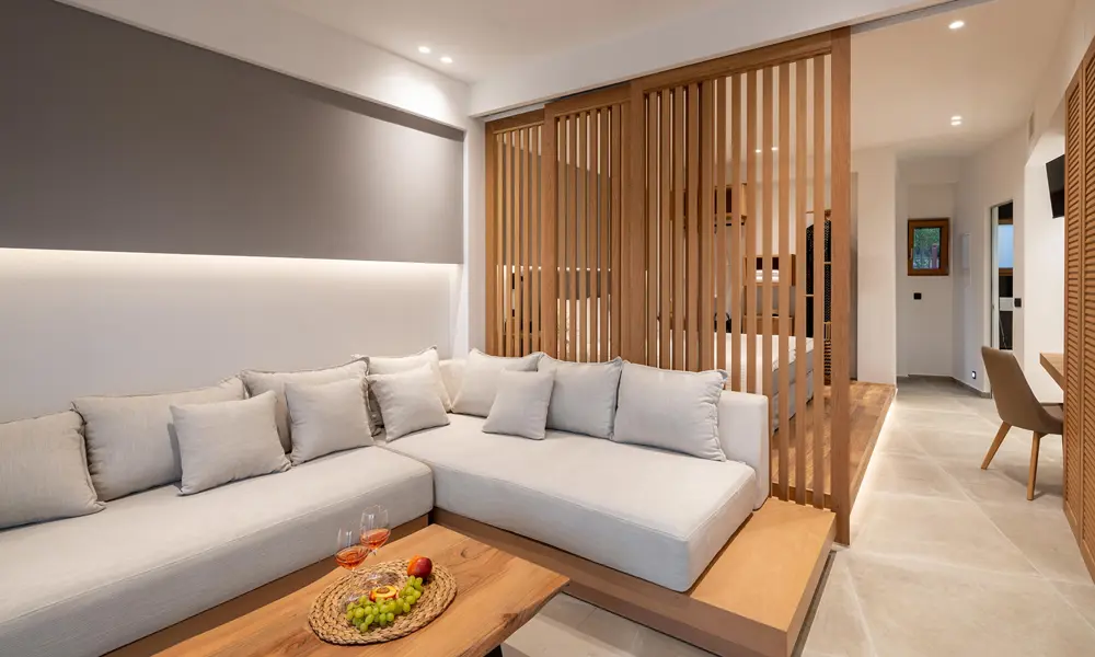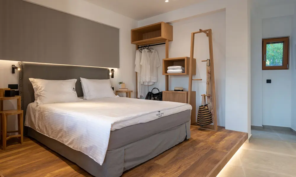 Sivota Kipoi Design Suites har i alt 4 store 1-vær. lejligheder med privat terrasse med swimmingpool. Alle fire lejligheder har blandt andet veludstyret køkken med spiseplads. Køkkenet ligger i åben forbindelse med hyggekrogen, som har hjørnesofa, fladskærms TV og udsigt til terrassen. Hyggekrogen og dobbeltsengen er adskilt med en lille skillevæg. Udover en stor dejlig dobbeltseng har du også opbevaringsplads, et ekstra fladskærms TV og et lækkert badeværelse med brusekabine.