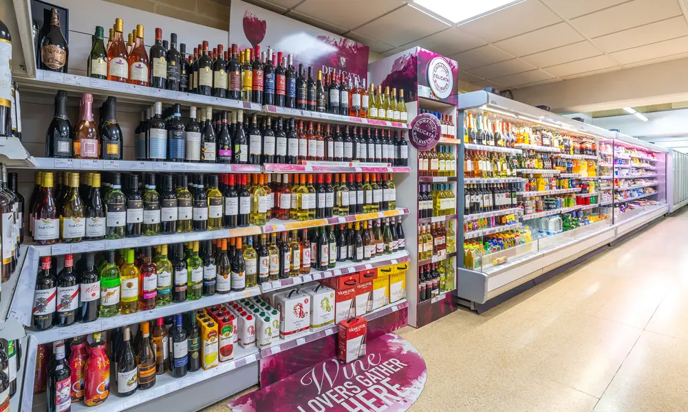 1 stor flaske cola, 2 øl, Frugtkurv, 1 flaske rødvin, 1 stor pose chips, 1 liter appelsinjuice, Småkager, ½ liter mælk, Knækbrød og 2 liter vand.
