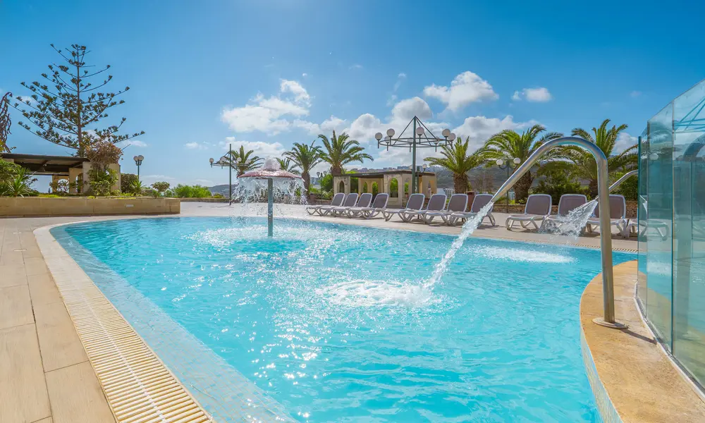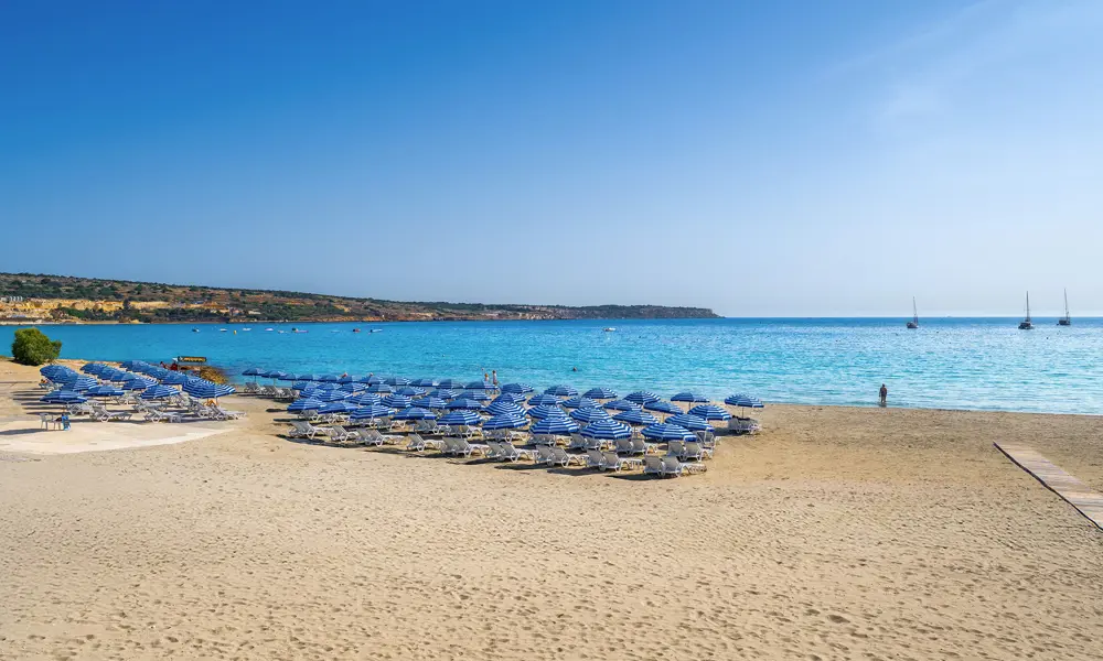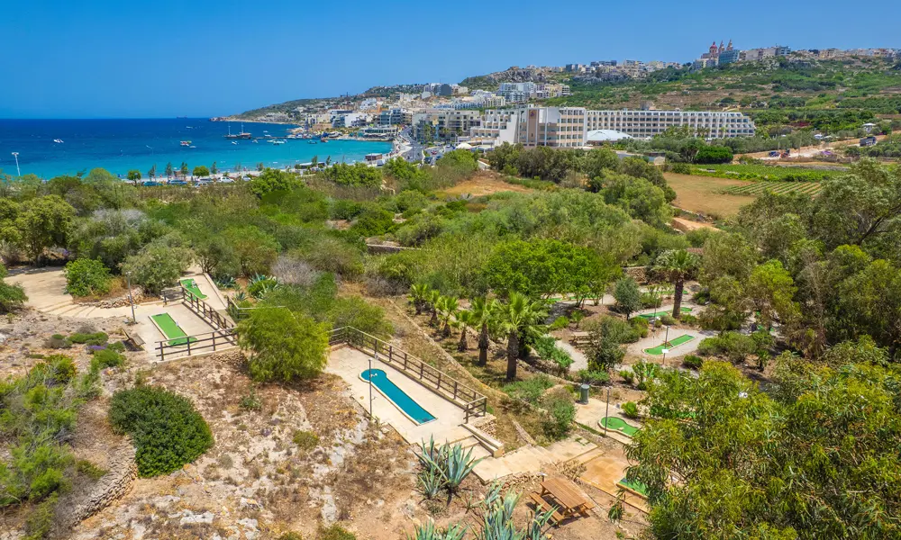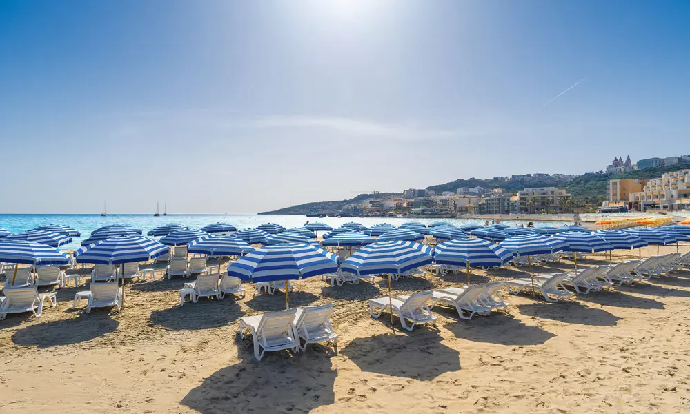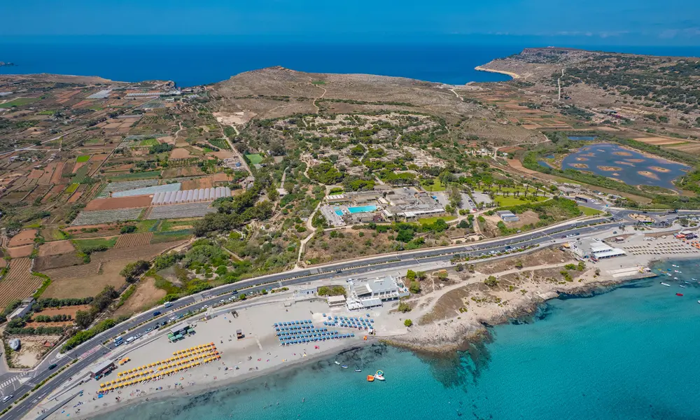 Mellieha Holiday Centre ligger naturskønt på det nordlige Malta, tæt på den charmerende by Mellieha og blot 300 meter fra en af Maltas bedste og mest børnevenlige sandstrande. Via feriebyens private gangtunnel kan du komme direkte til stranden uden at krydse vejen. Ved sandstranden venter dejligt badevand, hyggelige spisesteder og sjove vandaktiviteter. I højsæsonen udlejes liggestole og parasoller.