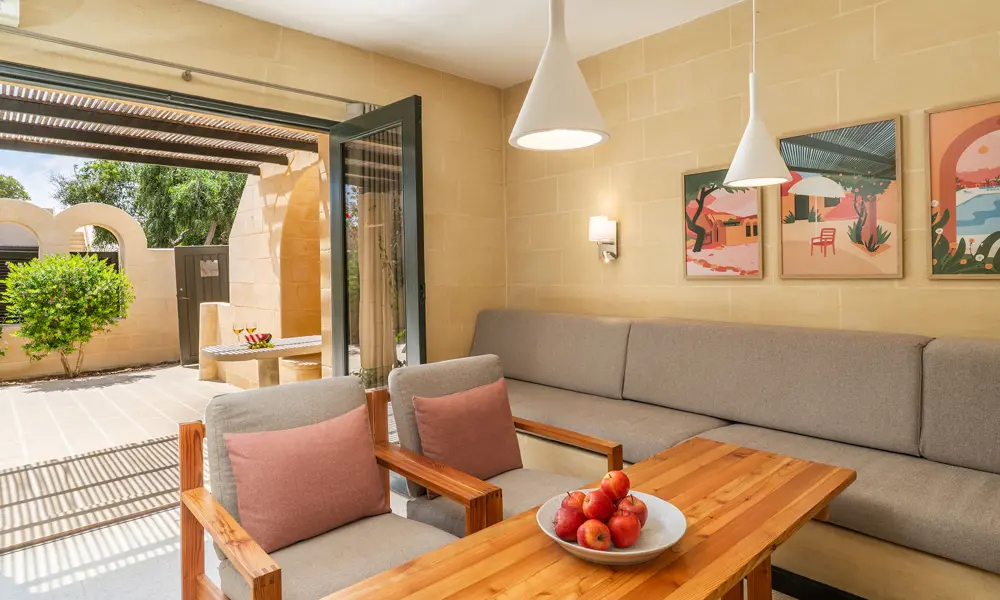 Med samme sydlandske charme som den øvrige ferieby er de 2-vær. feriehuse fra 2019 opført i maltesisk byggestil med gule kalksten, hyggelige gårdhaver og tagterrasser. Feriehusene ligger i harmonisk forlængelse af resten af feriebyen - tæt på sandstrand, fællesområdet med swimmingpools og reception.