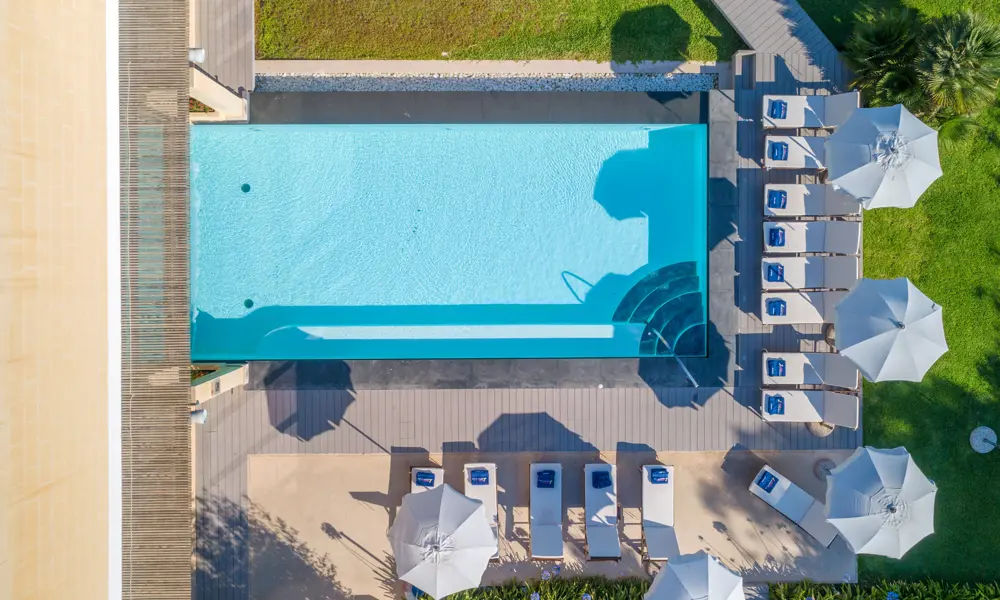 Poolbaren tilbyder blandt meget andet cocktails, øl, sodavand, is, slush ice, grillede panini, hjemmebagte tærter, dampende pastaretter, friske salater og lækre anretninger med årstidens solmodne frugter.