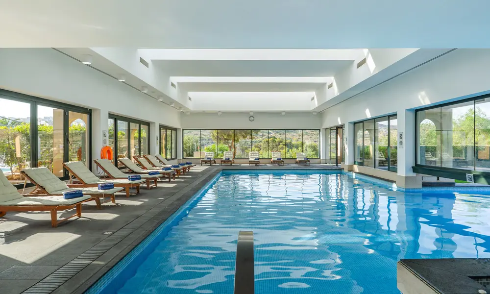 Ved siden af den store udendørs pool finder du vores indendørs poolområde, som er forbeholdt voksne.