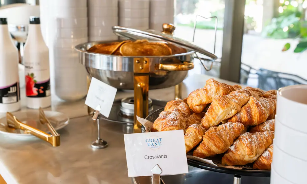 Har du bestilt pension, er det i restaurant Great Dane du nyder morgenmad og evt. aftensmad. Morgenmaden serveres fra buffet, frokosten serveres i Hansen Gastro bar, hvor du vælger fra menukort. Aftensmaden kan både være tallerkenservering eller buffet.