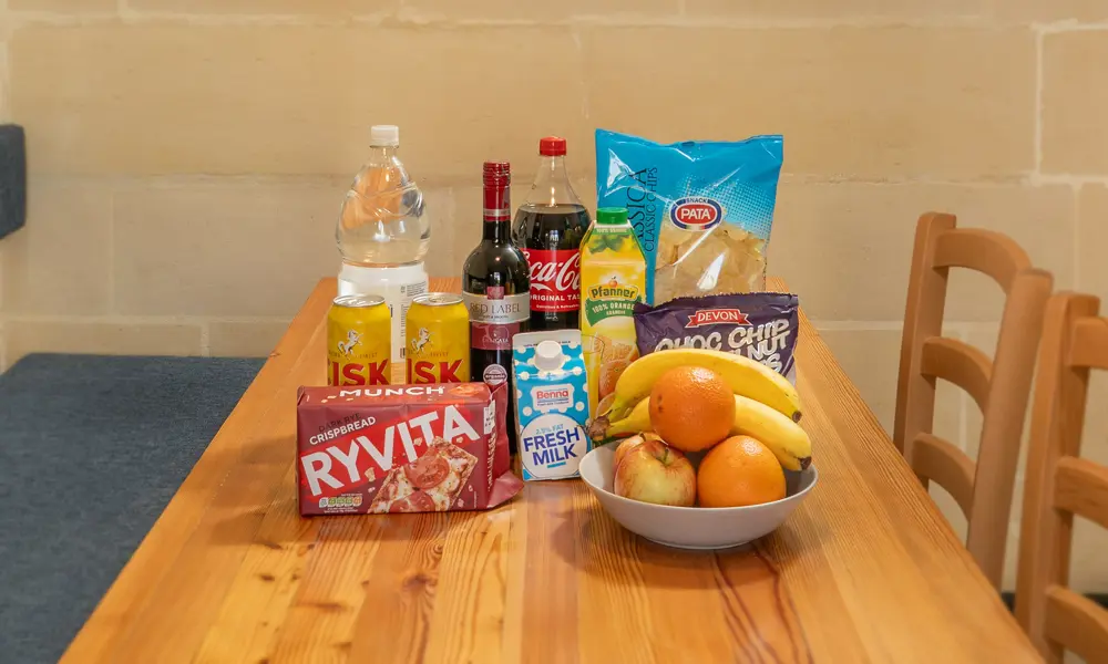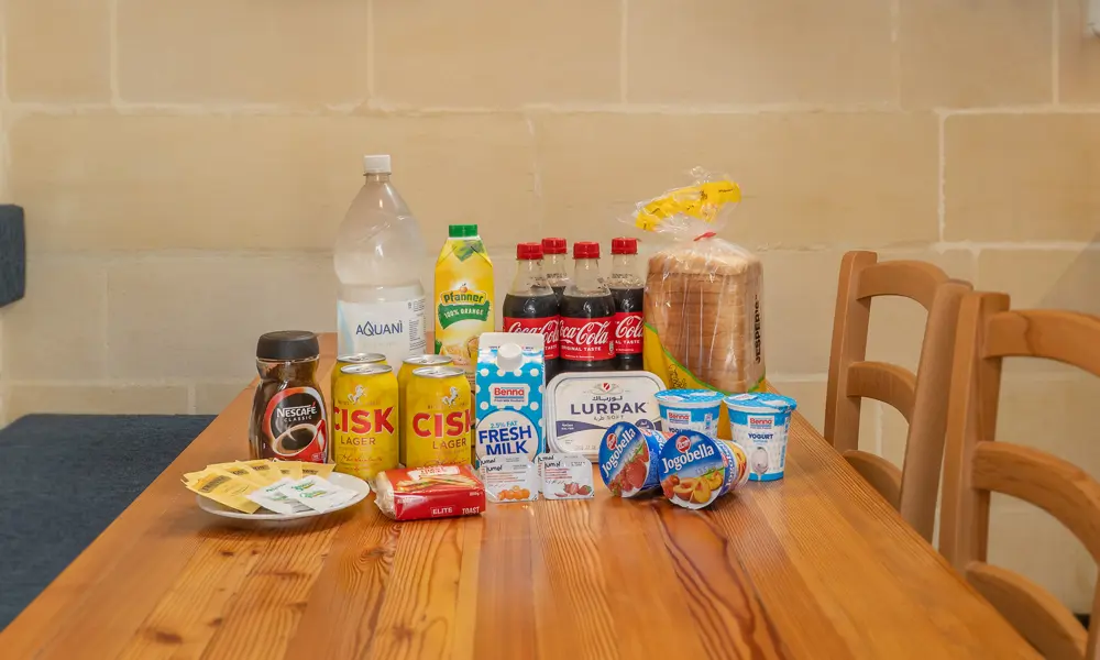 På Mellieha Holiday Centre kan du vælge mellem 2 forskellige velkomstpakker, så du kan 'lande' i feriehuset med fyldt køleskab, uden at skulle på indkøb først.