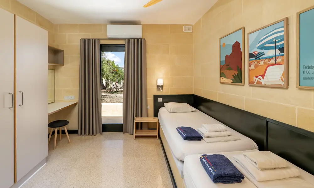 På Mellieha Holiday Centre på Malta kan du vælge mellem vores smukt placerede feriehuse på 70 m2 med tilhørende privat gårdhave og tagterrasse, 2-vær. feriehuse på 55 m2, 1-vær. lejligheder på 30 m2 og dobbeltværelser på 20 m2. Enkelte feriehuse er specielt velegnede til kørestolsbrugere.